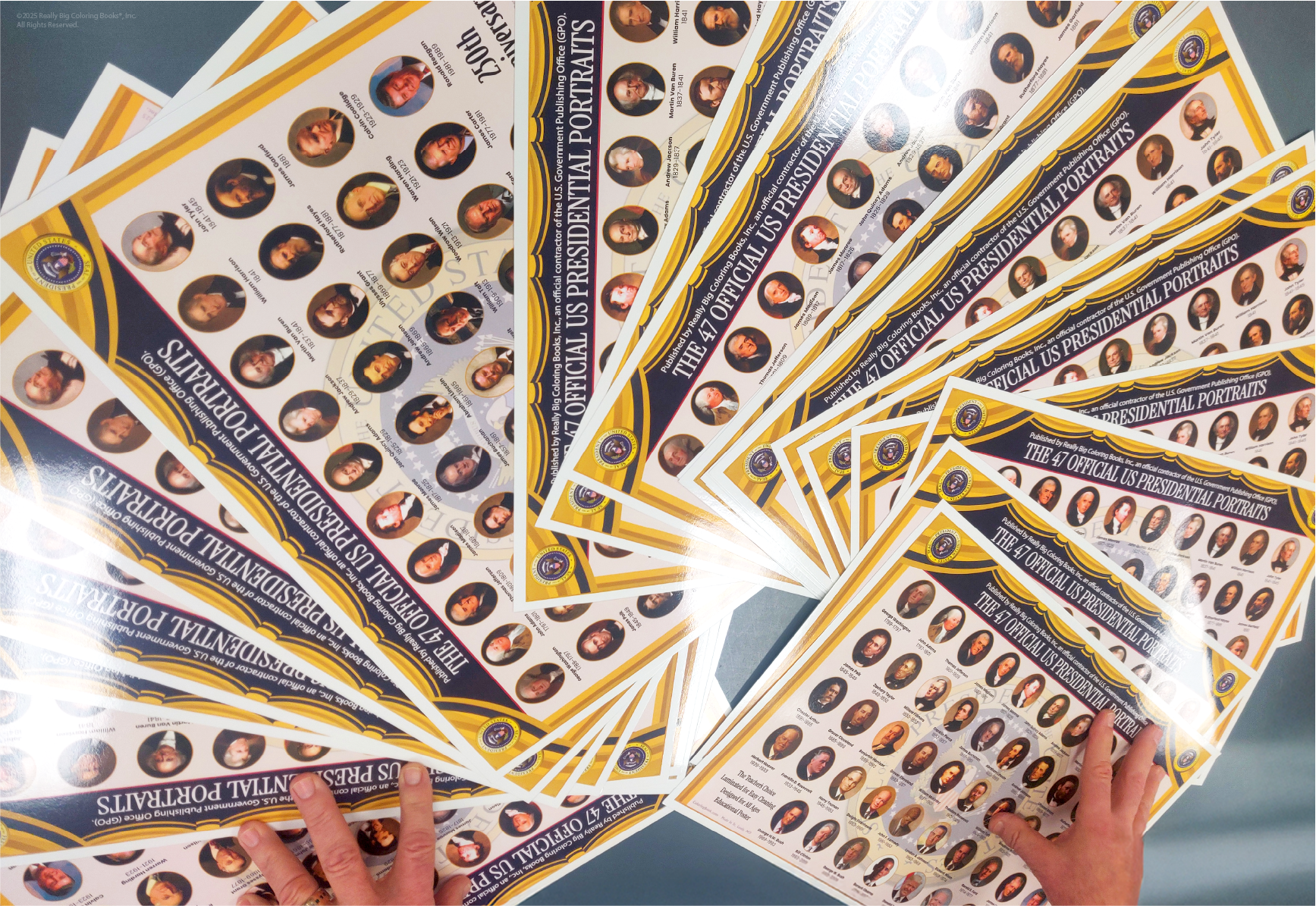 Presidents Chart | Made in St. Louis, MO USA. Manufactured by Really Big Coloring Books®, Inc. an office Government Publishing Office (GPO) contractor. US Presidents Poster for Classroom, 2025 Edition – 12×18 inches.