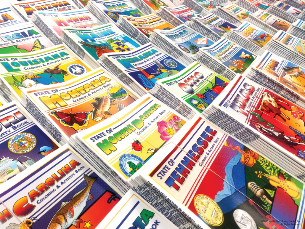 Really Big Coloring Books®, Inc. has been publishing educational coloring books since 1988, serving schools, churches, and families in more than 90 countries with titles in over 20 languages. All books are manufactured in-house at the company’s St. Louis, Missouri headquarters, ensuring consistent quality, fast turnaround, and reliable supply for institutional buyers.