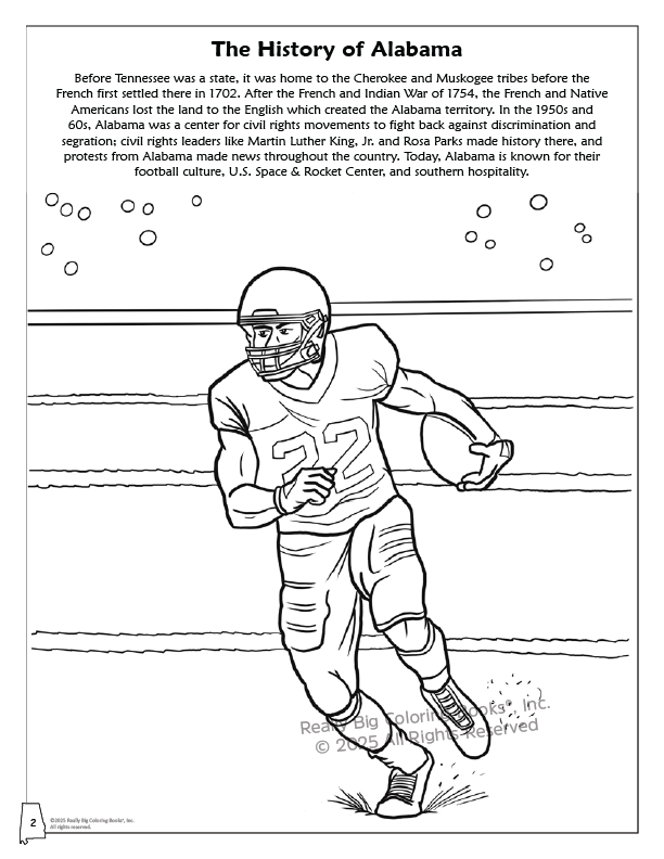 Alabama State Coloring Book. This 32-page book is used as a teaching and learning tool. This Alabama State Coloring, Activity and Game Book is designed to be a fun, educational activity book to help young children understand facts about the State of Alabama. Through fun activities like matching, complete the state outline, flag matching and more, this interactive coloring book is both entertaining and educational. This approach to teaching captures both the imagination and creativity of students, and helps them become excited to learn about all of the state of Alabama.