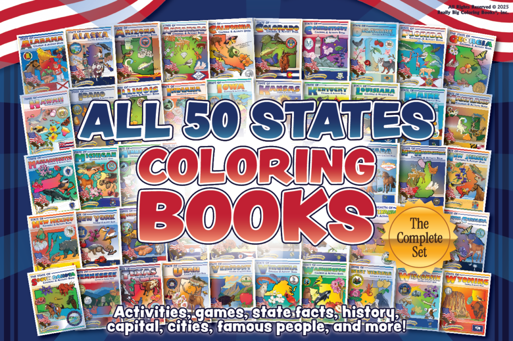 All 50 State Coloring Book Set – Each State has its own 36-page book.