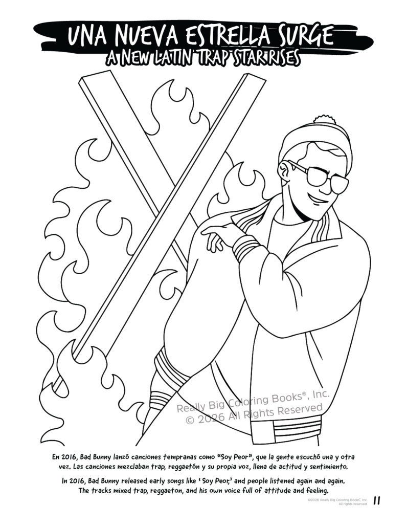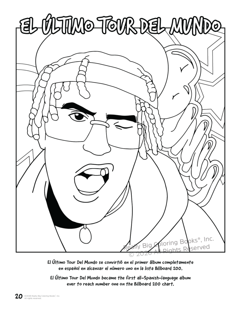 The Bad Bunny Coloring Book is an independent, work created for educational and entertainment purposes. It is not sponsored, by Bad Bunny (Benito Antonio Martínez Ocasio) or his representatives. This book was created specifically by Really Big Coloring Books, Inc., the owner and creator of the world’s original coloring book website: ColoringBook.com.