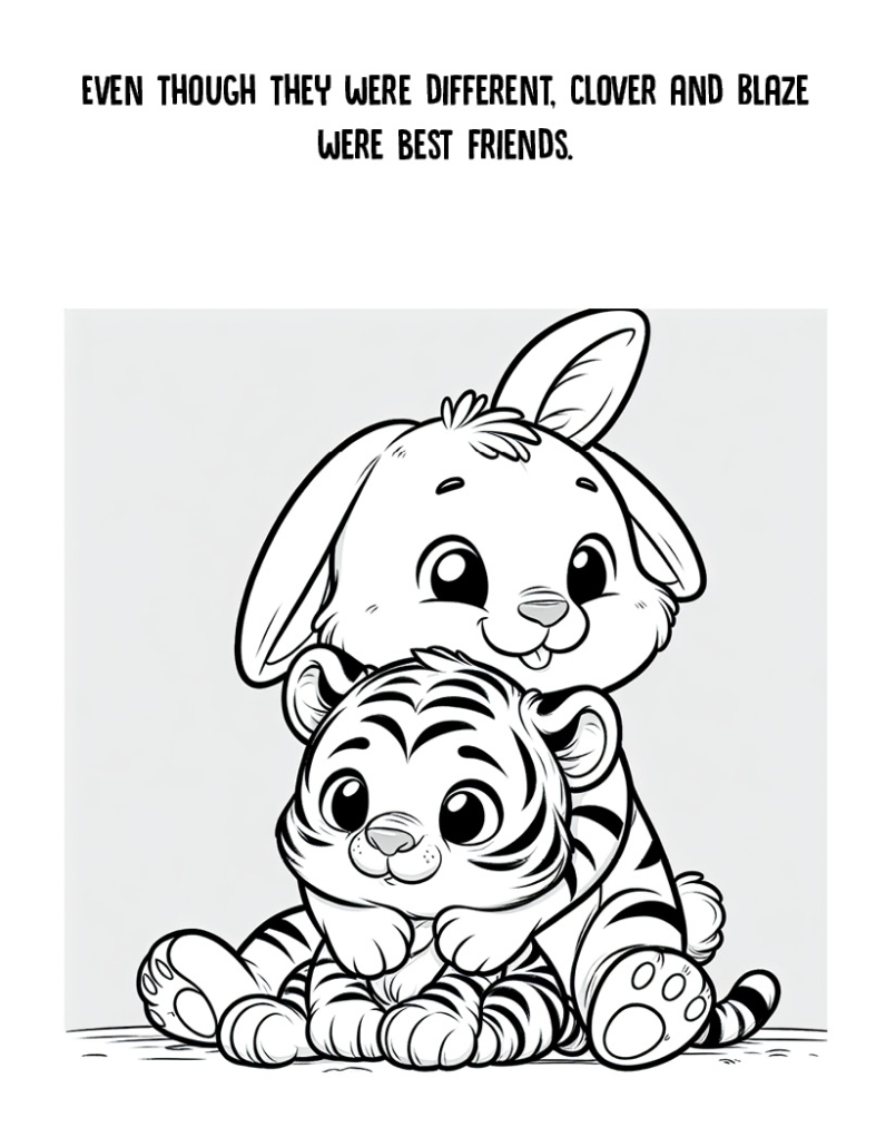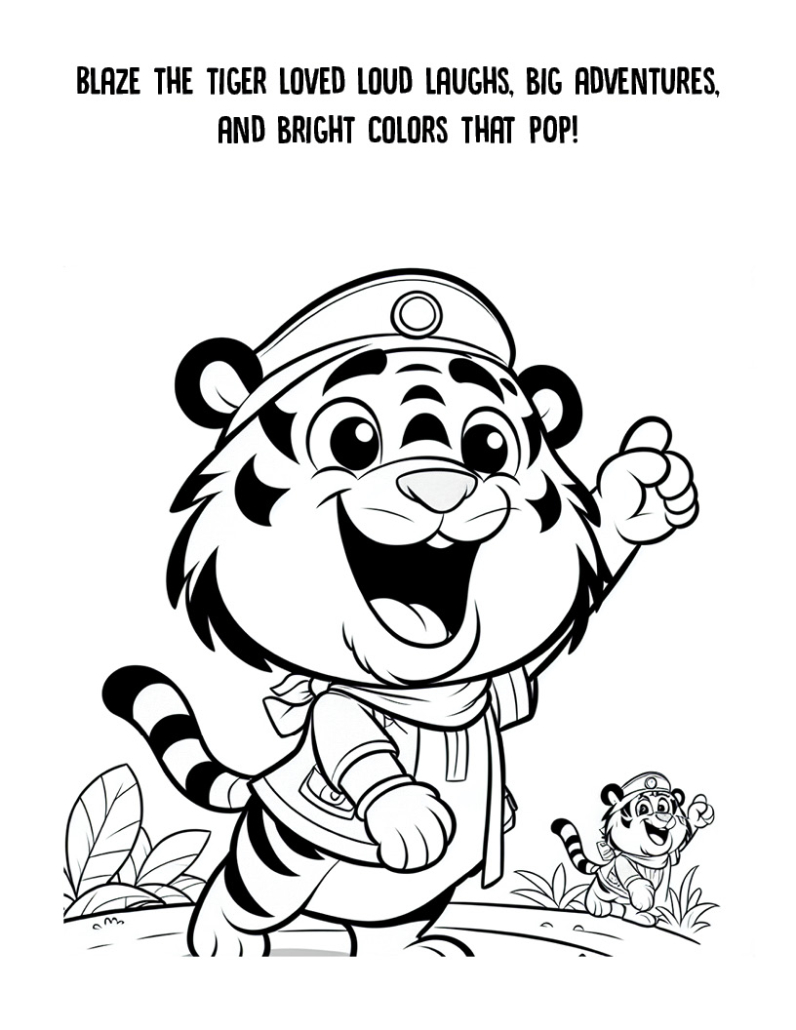 Blaze the tiger is completely different—and that’s what makes this children’s book so much fun. Blaze loves loud laughs, big adventures, and bright colors that POP off the page. His wild imagination, bold stripes, and fearless coloring style make him an instant favorite for energetic, curious readers for the Clover and Blaze Coloring Book.