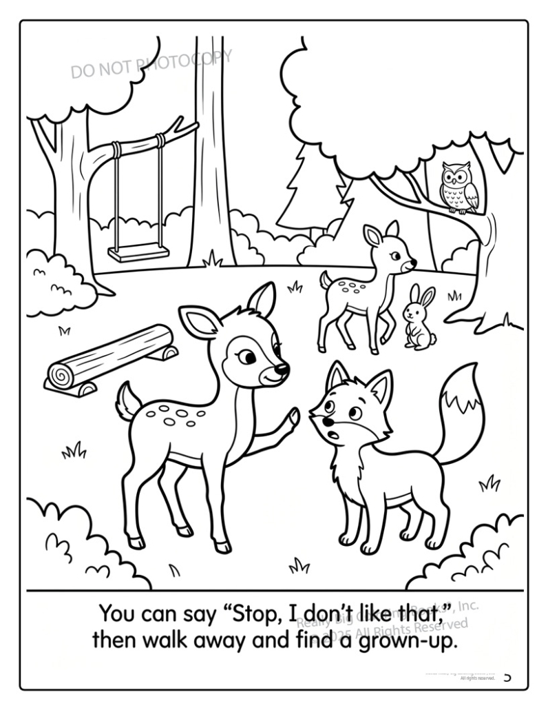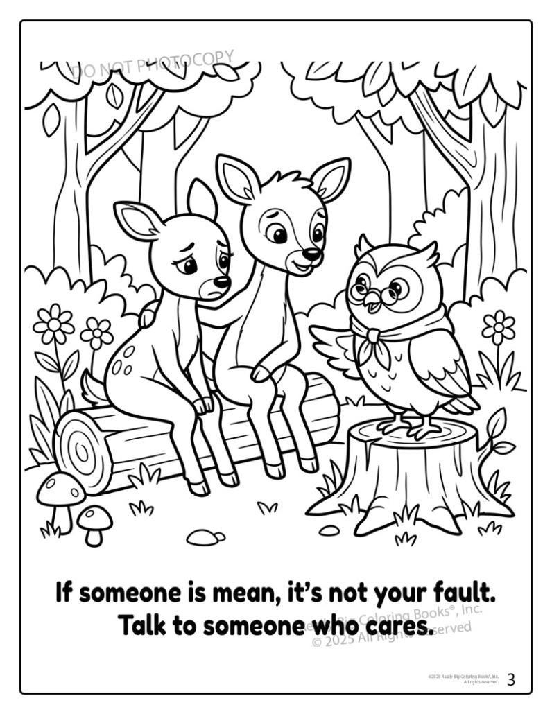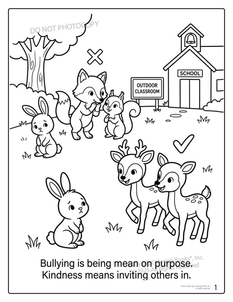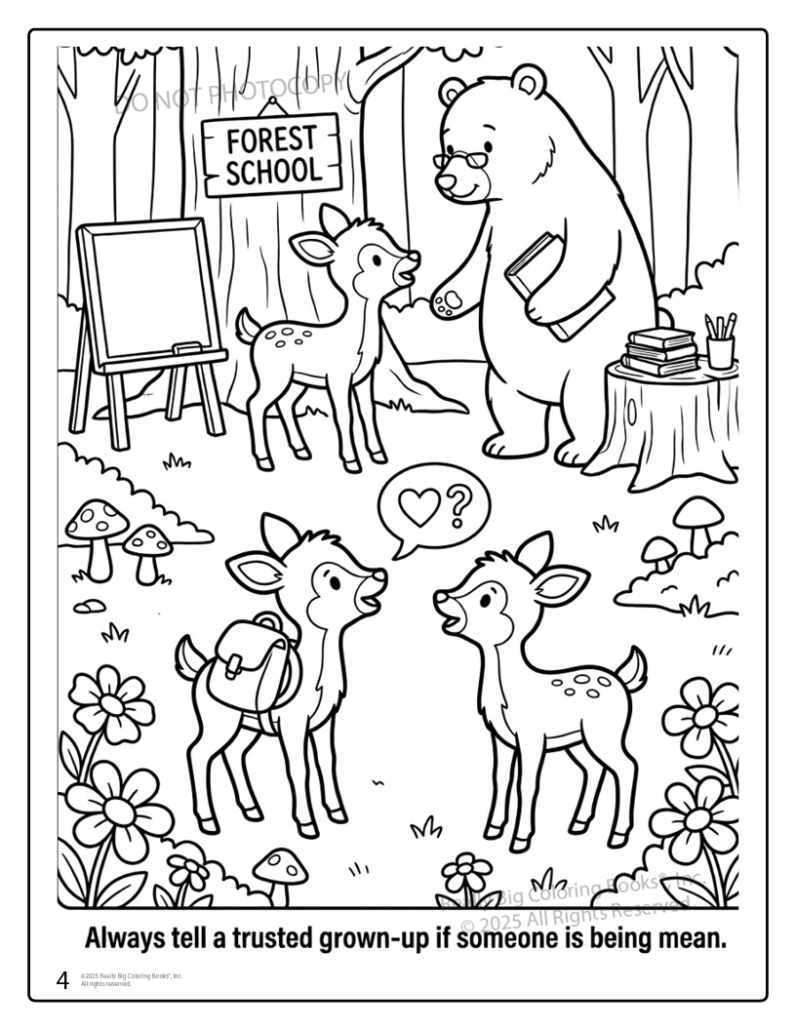 Featuring Dylan and Dotty, two friendly deer kids, each page shows everyday situations children recognize—on the playground, at lunch, in a forest “school,” and online—and turns them into teachable moments. Kids learn what bullying is, why everyone deserves respect, and how to be an upstander instead of a bystander. The gentle illustrations avoid anything frightening while clearly showing kind choices children can copy in real life.