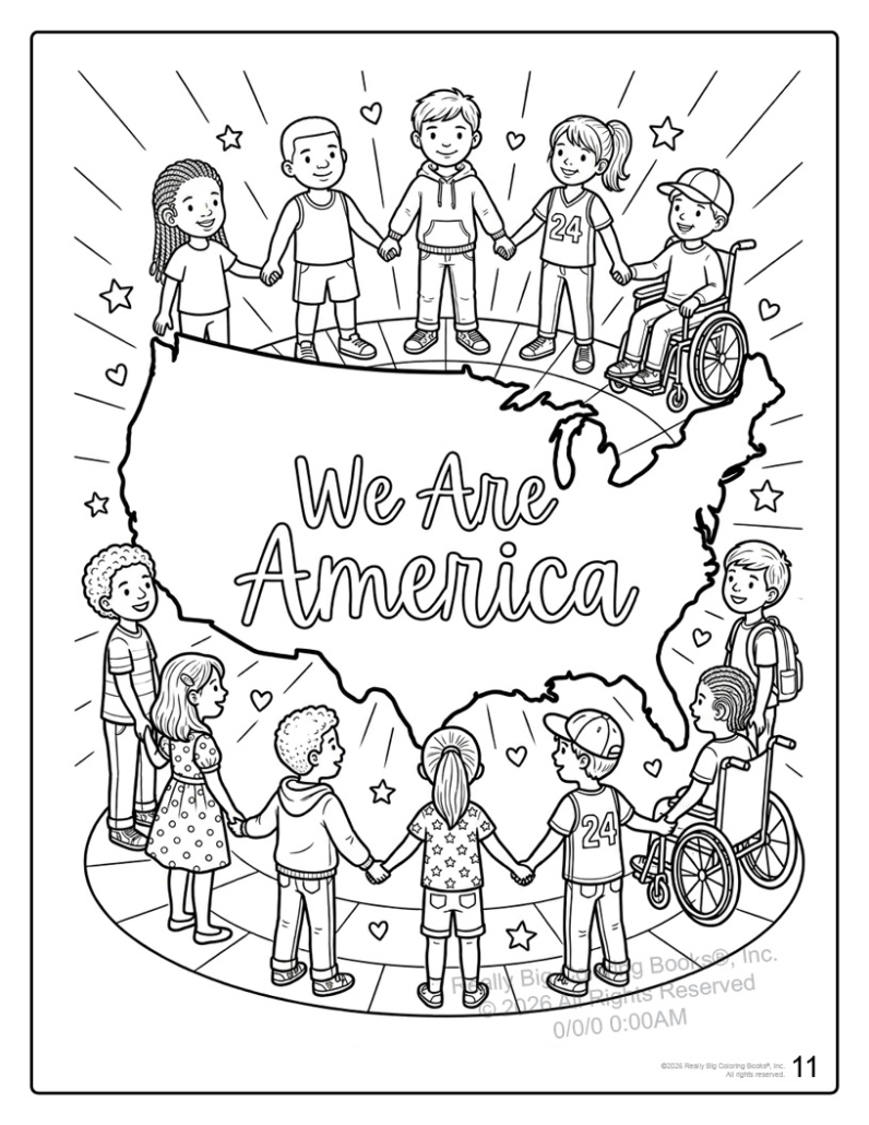 This American history coloring book encourages creativity, fine‑motor skills, and early social studies learning. Parents and teachers can use each page to spark conversations about freedom, community, and what it means to be an American while kids color engaging patriotic scenes. The “We Wrote New Rules!” page introduces the founding era in an age‑appropriate way, while “Thank You, Helpers!” highlights modern everyday heroes like firefighters, nurses, teachers, and service members.