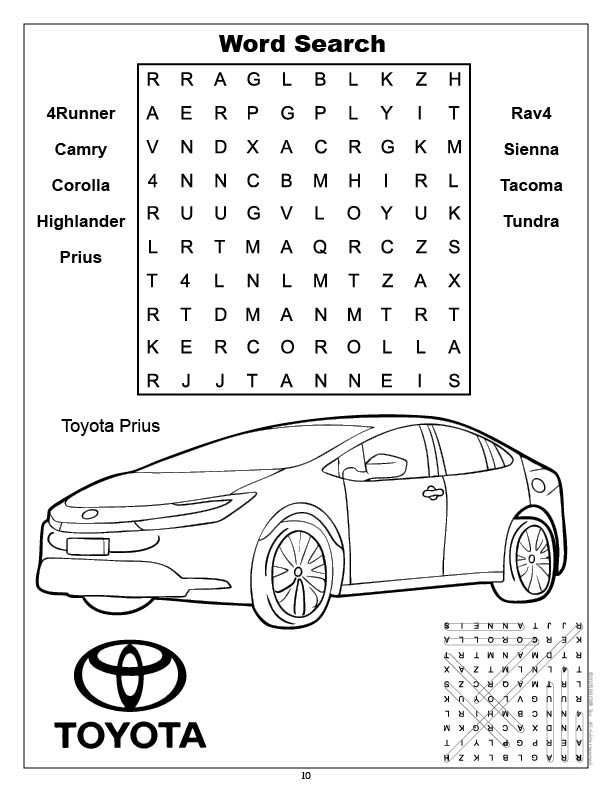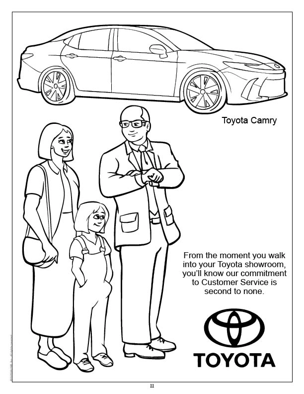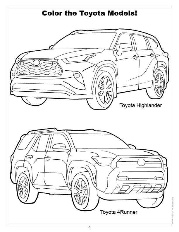 This Toyota Imprint Coloring and Activity Book for local dealers. Automobile dealers love these books to help children learn about cars and keep them busy in the showroom. This specific book showcases models from individual Toyota dealerships advertising their own stock. These nice coloring books are compared to newspaper and other advertisements in which specific dealers can showcase products to their local communities. Dealers send the graphics and we make your specific book! Great fun for kids and parents to learn about your dealership.