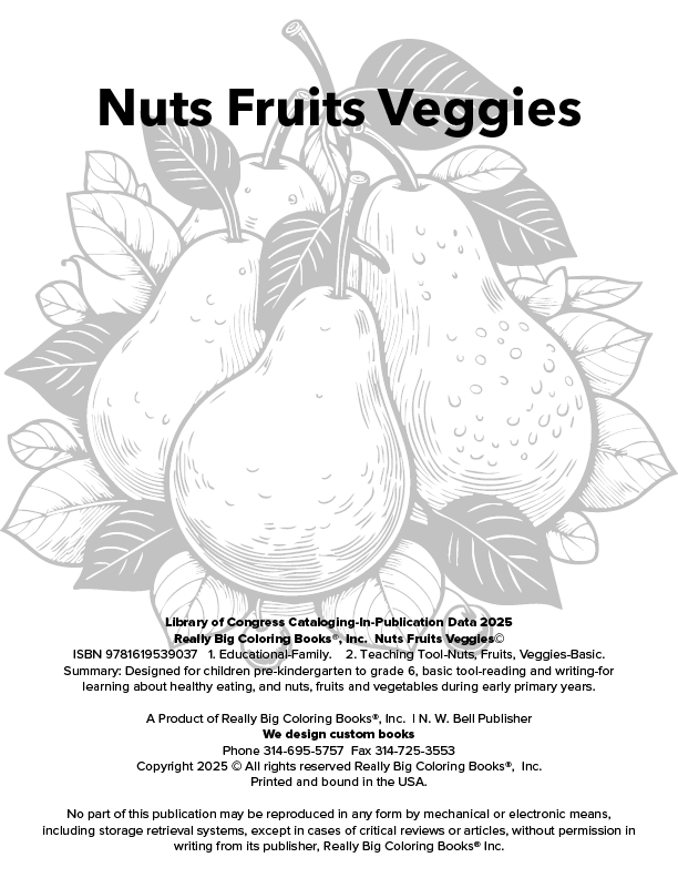 The Fruits and Vegetables Coloring Book is thoughtfully designed to enlighten children and foster learning about healthy eating habits through the enjoyable activity of coloring.