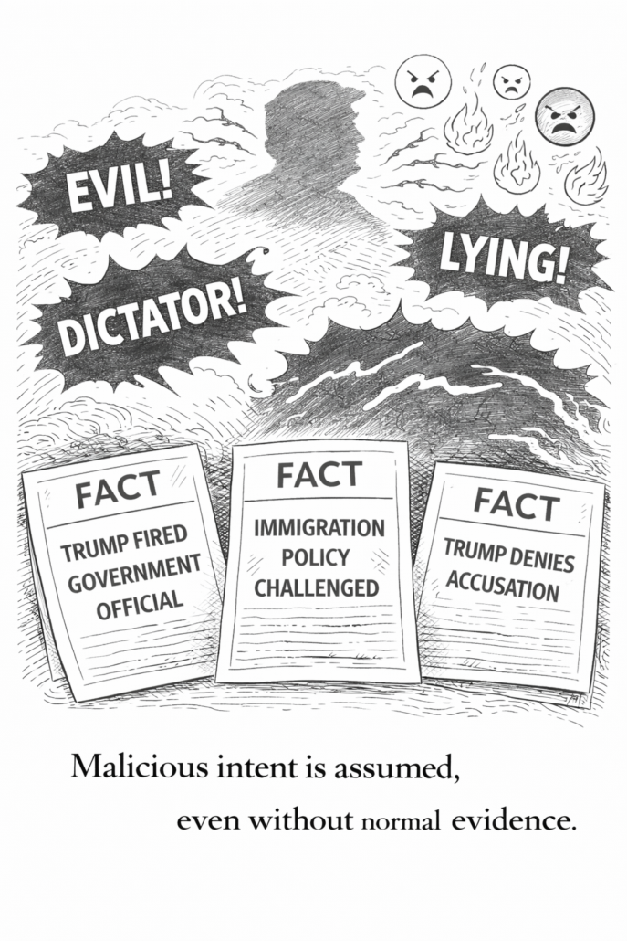 Coined as a rhetorical label, not a clinical condition. Suggests that criticism of Trump goes beyond normal political disagreement. Implies responses driven more by emotion, fear, or hostility than by policy analysis. Supporters often argue that TDS causes people to:. Interpret all Trump-related actions in the worst possible light. Assume malicious intent regardless of evidence. React disproportionately to statements, tweets, or media coverage.
